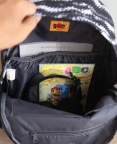 - Balo bỏ vừa laptop tài liệu A4, sách tiếng Anh và sách vở đi học.